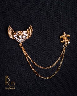 Lanț metalic pentru sacou, Trompeta cu pietre albe, Auriu- LT537