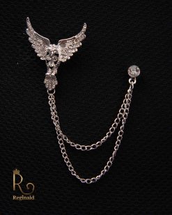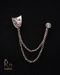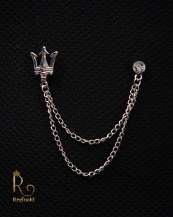 Lanț metalic pentru sacou,Coroana cu pietre albe si negre, Auriu- LT536
