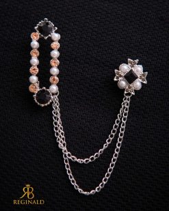 Lanț metalic pentru sacou, ancora cu cruce cu pietre albe si perle, Auriu- LT512