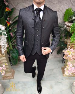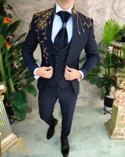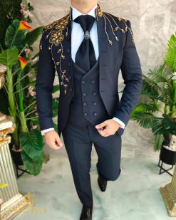 Set Cravata si batista, Turcoaz cu model - CV1074