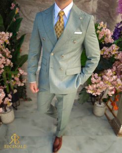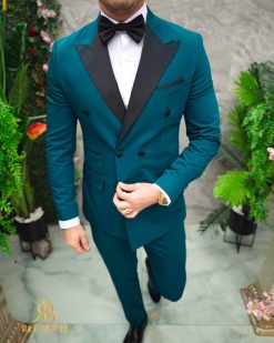 Set Cravata si batista, Turcoaz cu model - CV1074