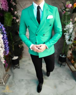 Set Cravata si batista, Turcoaz cu model - CV1074