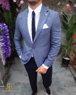 Set Cravata si batista, Turcoaz cu model - CV1074