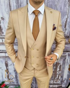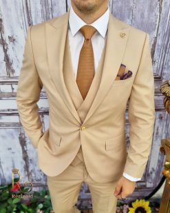 Costum crem de bărbați Reginald Slim-Fit set din 3 piese