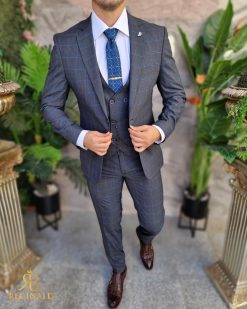 Costum de bărbați, bleumarin texturat, Sacou, Vesta si Pantalon – C4346