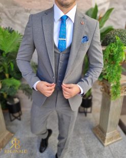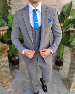 Costum de bărbați, gri/bordo in dungi, Sacou, Vesta si Pantalon – C4337