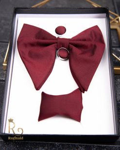 Set papion grena amplu cu butoni, brosa, batista – PP153