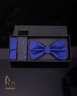 Set papion amplu cu butoni si batista culoare: bleumarin- PP288