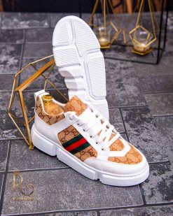 Adidași de bărbați, cu talpa înaltă, Albi cu șiret – AD490