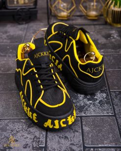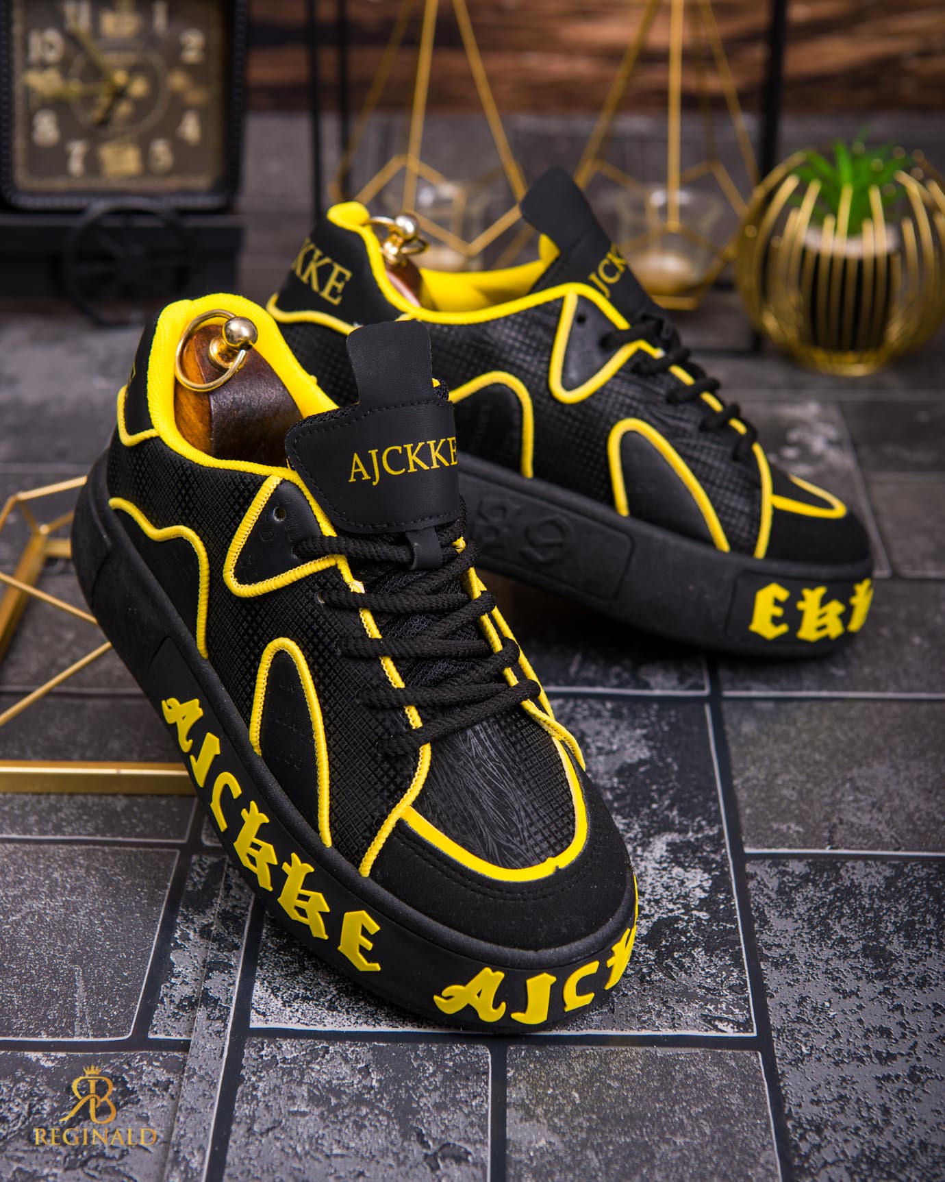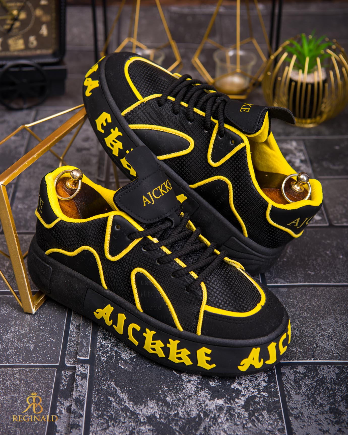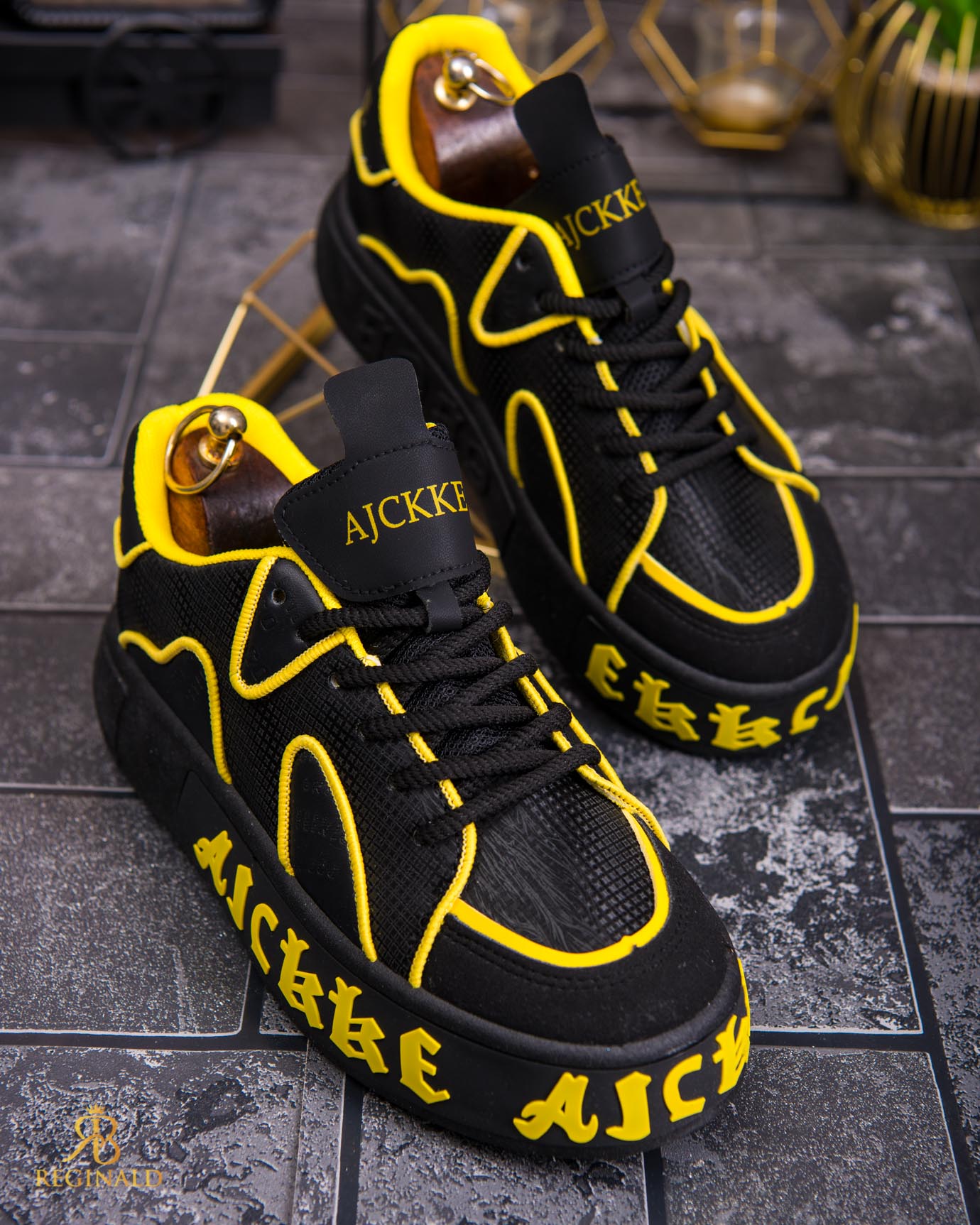 Adidasi de bărbați cu talpa înaltă, negri– AD851