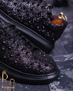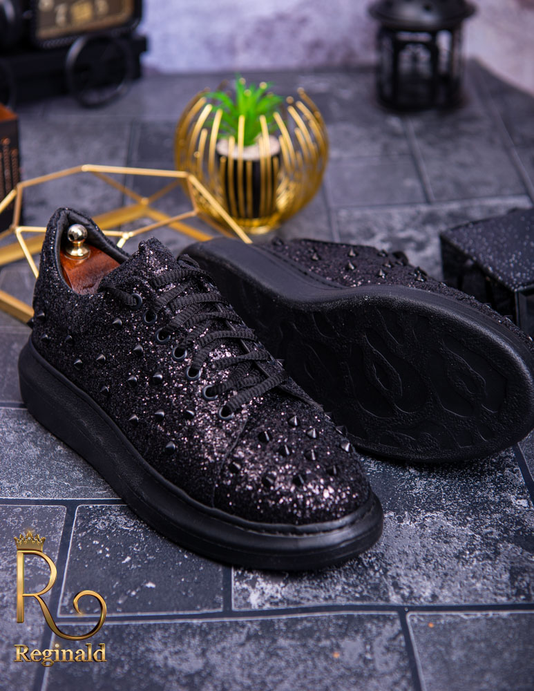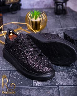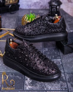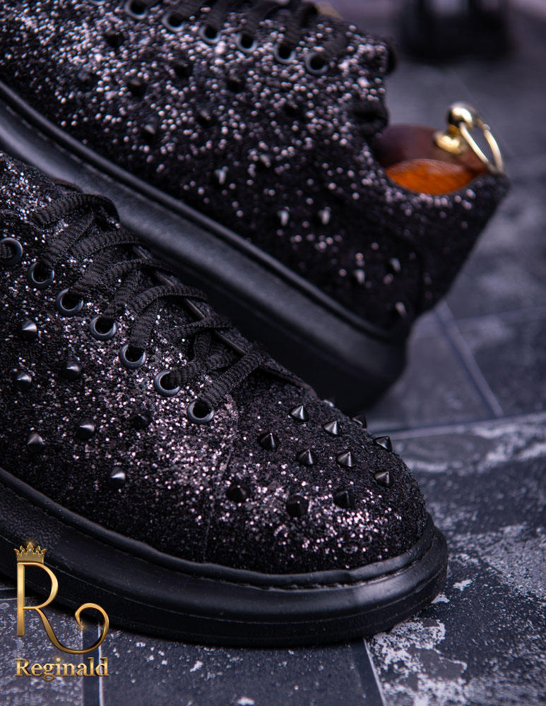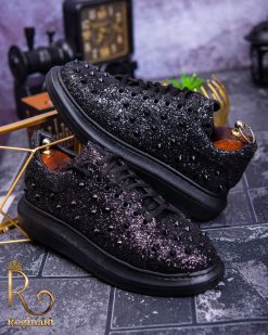Tenisi de barbati, cu siret. Decorati cu tinte , material din piele eco cu sclipici aplicat, talpa cusuta din spuma, anti-aderenta.