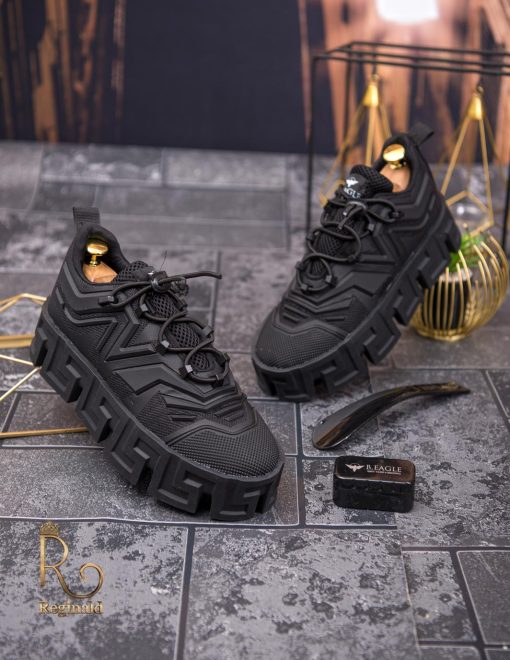 Adidașii de bărbați negri cu talpă înaltă sunt o alegere excelentă pentru cei care caută un stil modern și confortabil. Acești adidași sunt fabricați folosind un material rezistent , premium, care oferă un aspect sofisticat și durabilitate. Materialul pielei ecologice este o alternativă sustenabilă la pielea naturală și contribuie la reducerea impactului asupra mediului înconjurător.