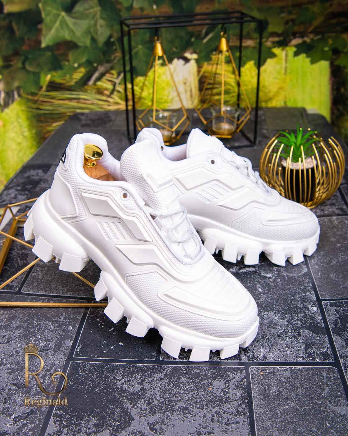 Adidasi barbatesti casual Serlion cu talpa inalta, de culoare alba