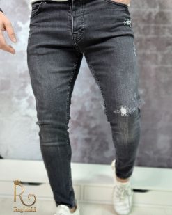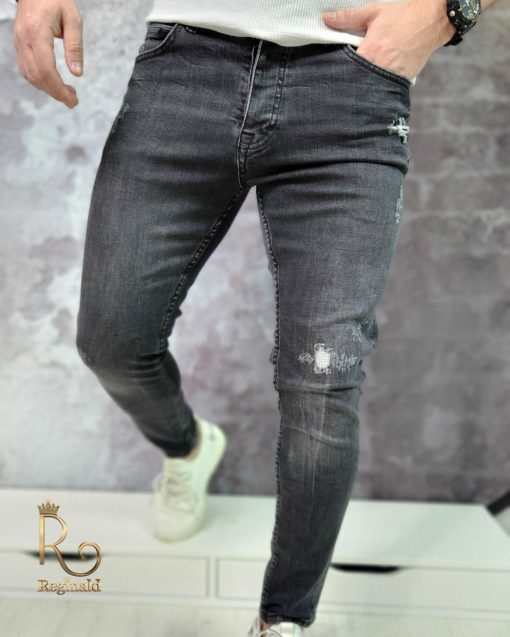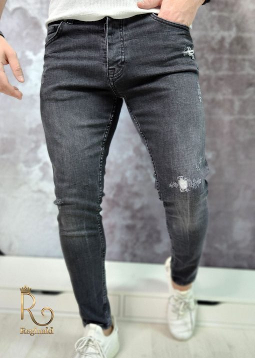 Blugi de bărbați, skinny fit, elastici si conici, Gri cu rupturi – BG914