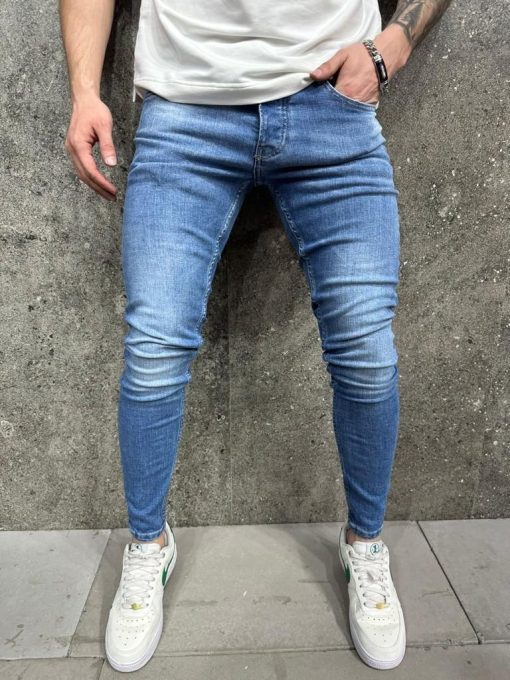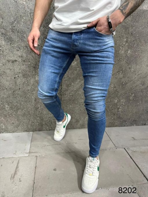 Acești blugi pentru bărbați sunt proiectați cu o croială skinny fit, adică se vor mula perfect pe corpul tău și vor evidenția linia piciorului. În plus, acești blugi sunt elastici, ceea ce îți va oferi o libertate de mișcare mai mare și o potrivire confortabilă. Acești blugi sunt de asemenea conici, ceea ce înseamnă că se vor strânge ușor în josul piciorului.