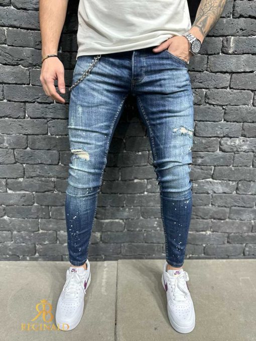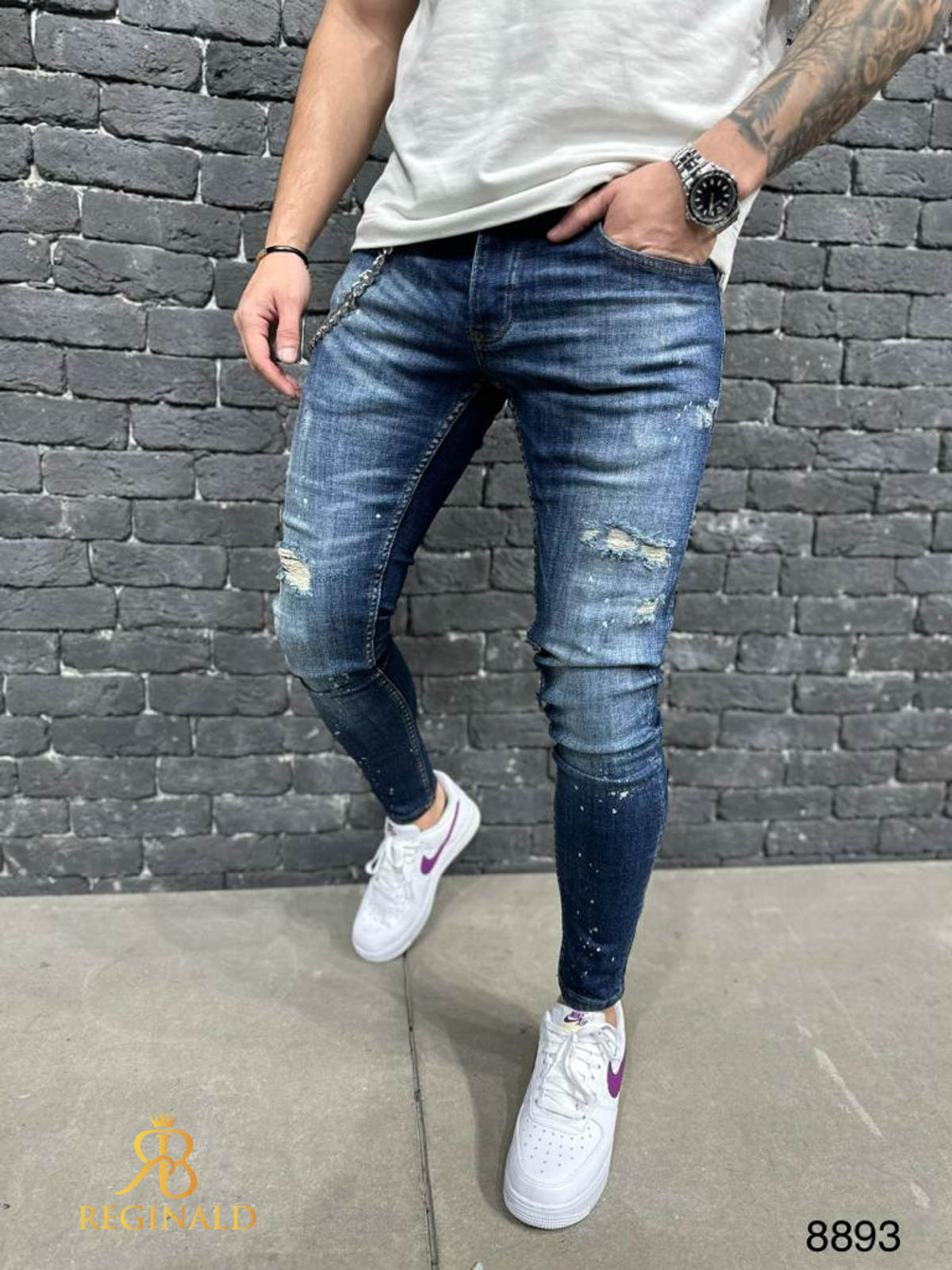 Acești blugi pentru bărbați sunt proiectați cu o croială skinny fit, adică se vor mula perfect pe corpul tău și vor evidenția linia piciorului. În plus, acești blugi sunt elastici, ceea ce îți va oferi o libertate de mișcare mai mare și o potrivire confortabilă. Acești blugi sunt de asemenea conici, ceea ce înseamnă că se vor strânge ușor în josul piciorului.