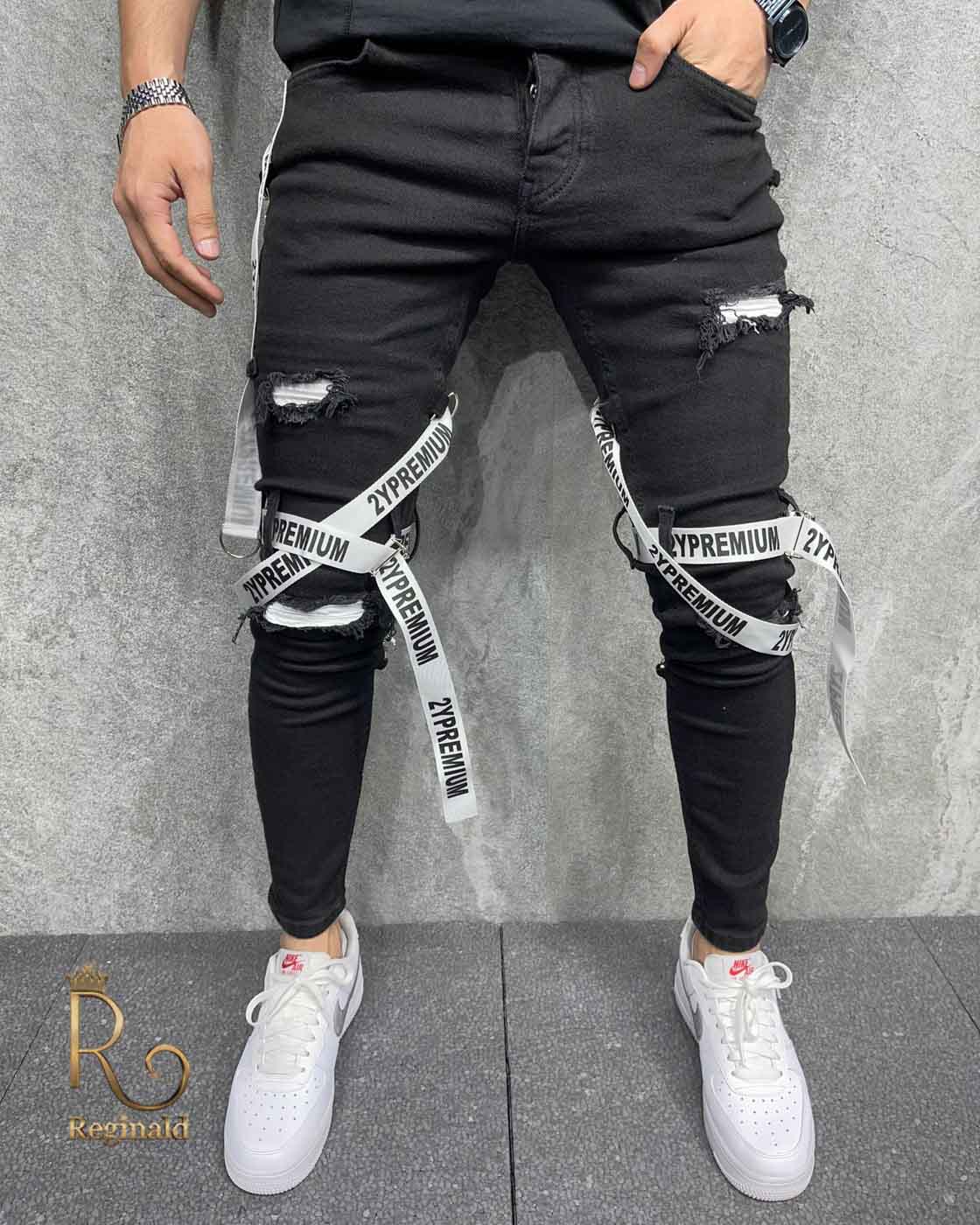 Blugi de bărbați, Slim Fit, Elastici si Conici, Negri – BG894