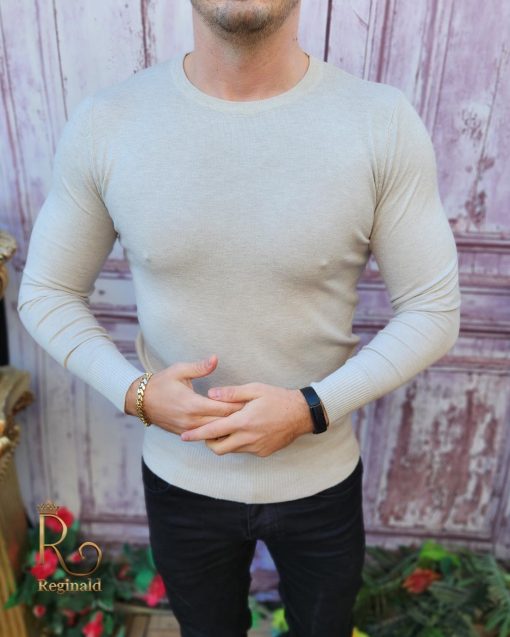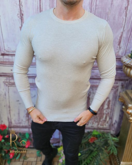 Bluza cu guler rotund, de bărbați, Slim Fit, Crem – BZ256