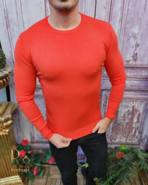 Bluza cu guler rotund, de bărbați, Slim Fit, Orange – BZ261