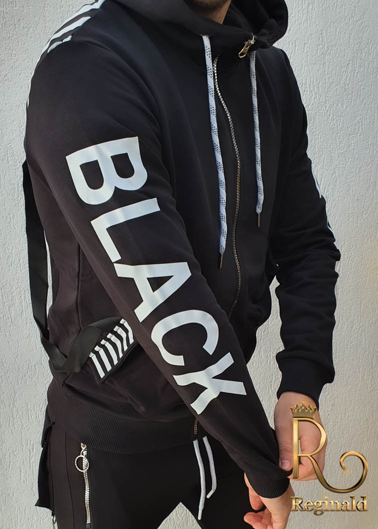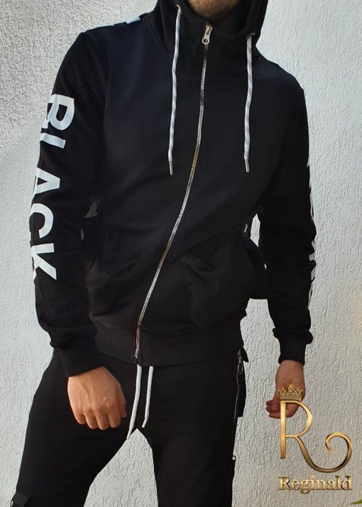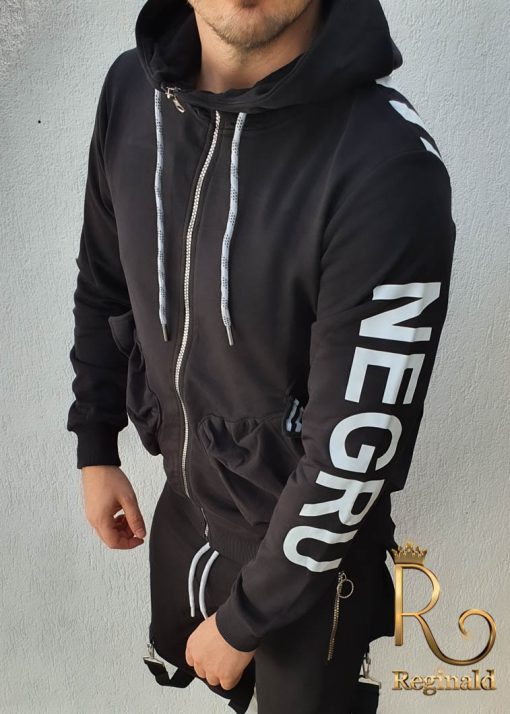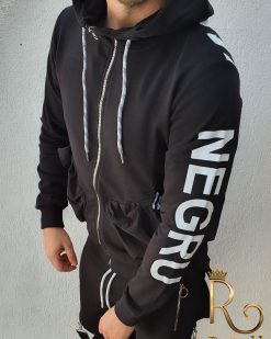 Bluza tip hanorac cu fermoar pe mijloc , slim fit cu bata elastica la incheieturi si talie.