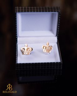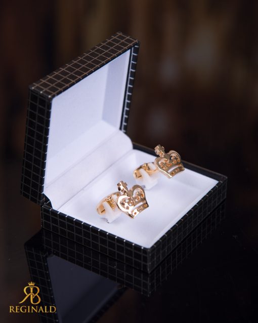 Butoni aurii, potriviți pentru ocazii formale sau festive. Se fixează ușor la manșetă cu o cheie pliabilă.