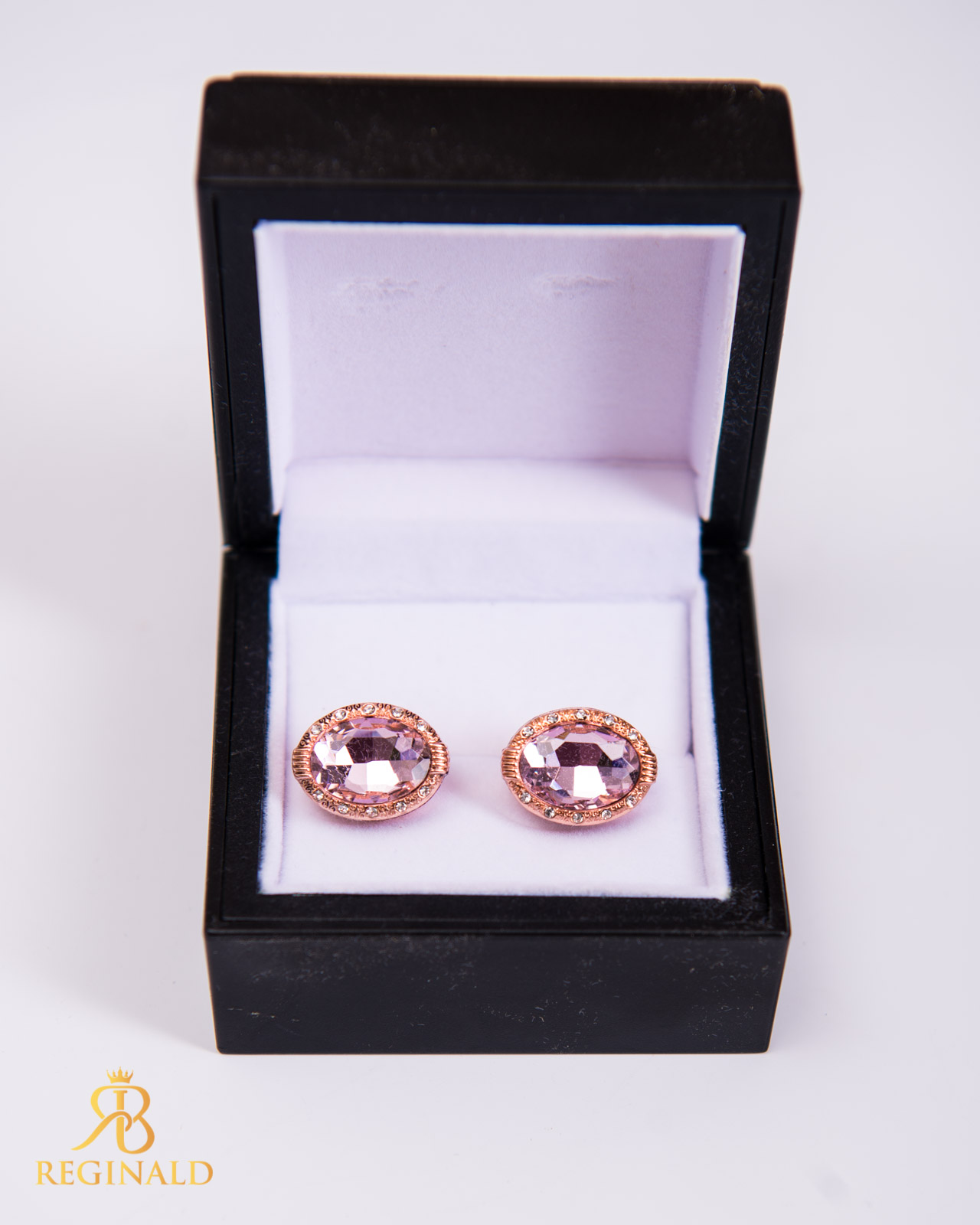 Butoni aurii cu pietre stralucitoare, potriviți pentru ocazii formale sau festive. Se fixează ușor la manșetă cu o cheie pliabilă.