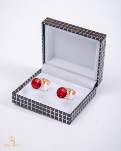 Butoni aurii cu pietre stralucitoare, potriviți pentru ocazii formale sau festive. Se fixează ușor la manșetă cu o cheie pliabilă.
