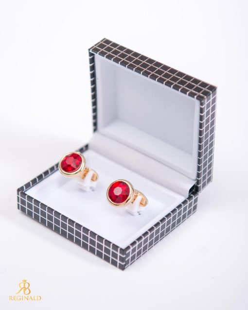 Butoni aurii cu pietre rosii- BT076