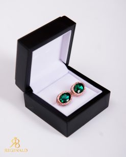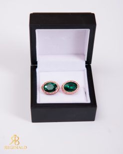 Butoni aurii cu pietre stralucitoare, potriviți pentru ocazii formale sau festive. Se fixează ușor la manșetă cu o cheie pliabilă.