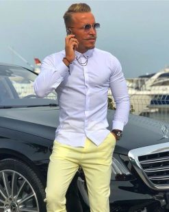 În concluzie, cămașa alba pentru bărbați cu butoni și guler evazat este o alegere excelentă pentru bărbații care caută o piesă vestimentară cu stil, eleganță și un aer contemporan. Detaliile impecabile, materialele de calitate și designul sofisticat fac din această cămașă o opțiune versatilă și atrăgătoare pentru orice garderobă masculină.