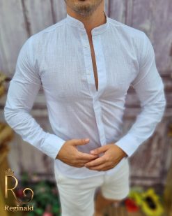 Cămașa barbateasca pentru sezonul cald avand textura ca a materialului confectionat din in.