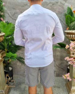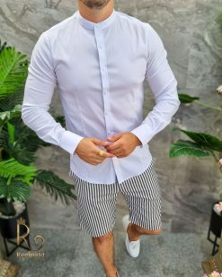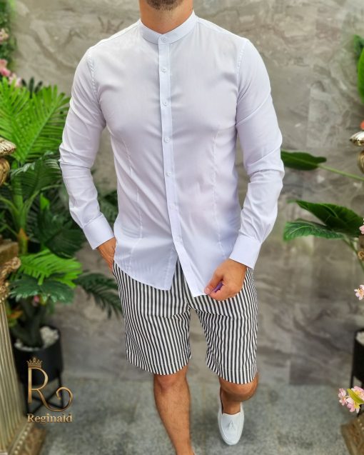 Cămașă alba de bărbați, Slim Fit, Guler Tunica – CM516