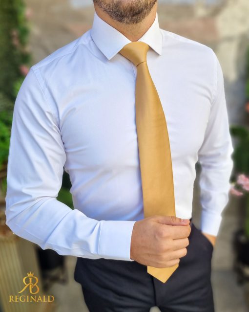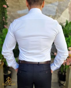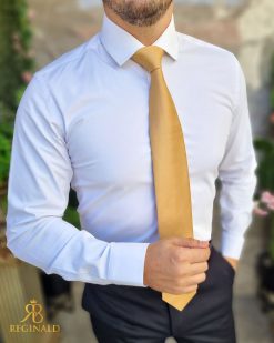 Cămașa barbateasca, nuanta alba cu textura fina in dungi oblice, model Enzo , croiala slim-fit