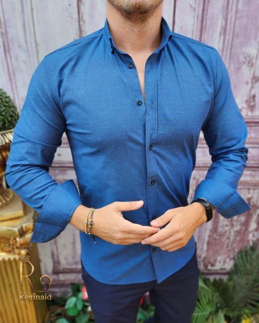 Cămașa barbateasca pentru sezonul toamna / primavara avand textura ca a materialului confectionat din in.