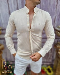 Cămașa barbateasca pentru sezonul cald avand textura ca a materialului confectionat din in.