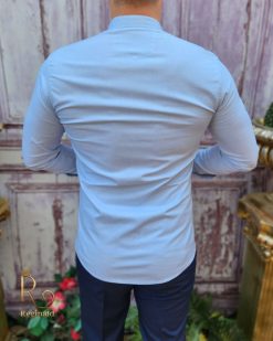 Cămașa barbateasca pentru sezonul toamna / primavara avand textura ca a materialului confectionat din in.