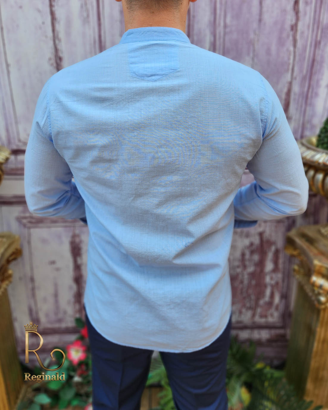 Cămașă bleu de bărbați, guler tunica, texturata – CR89