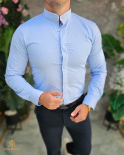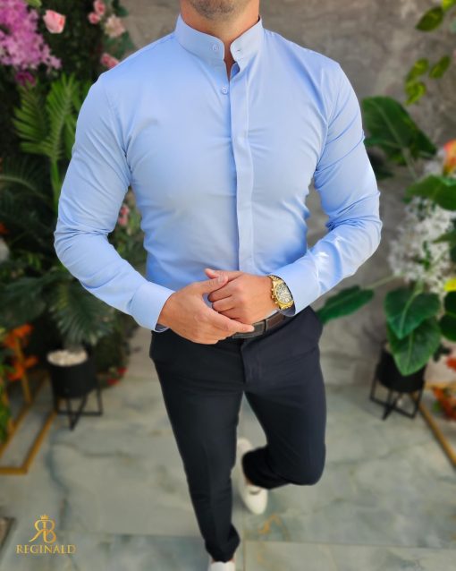 Cămașă bleu de bărbați, tunica, slim-fit – CR182