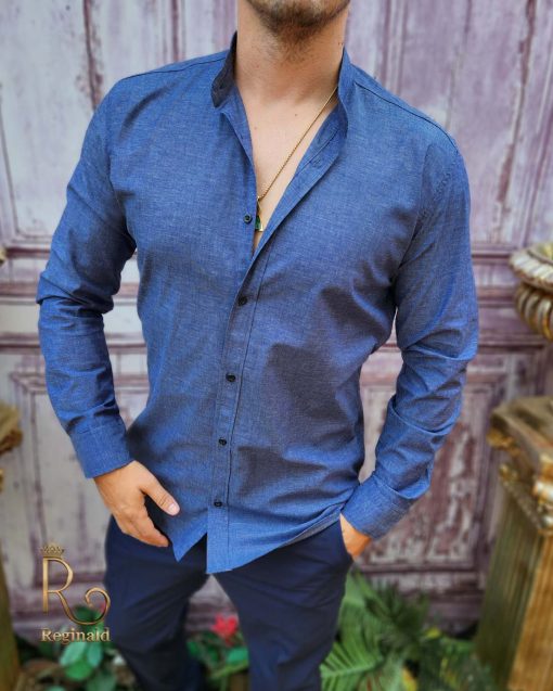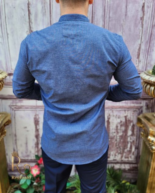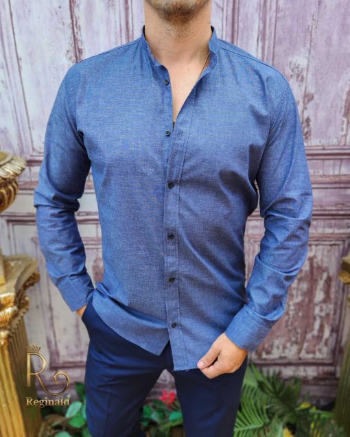 Cămașa barbateasca pentru sezonul toamna / primavara avand textura ca a materialului confectionat din in.