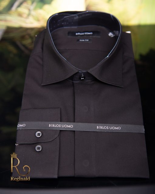 Camasa bleumarin inchis slim-fit,eleganta, cu guler inalt