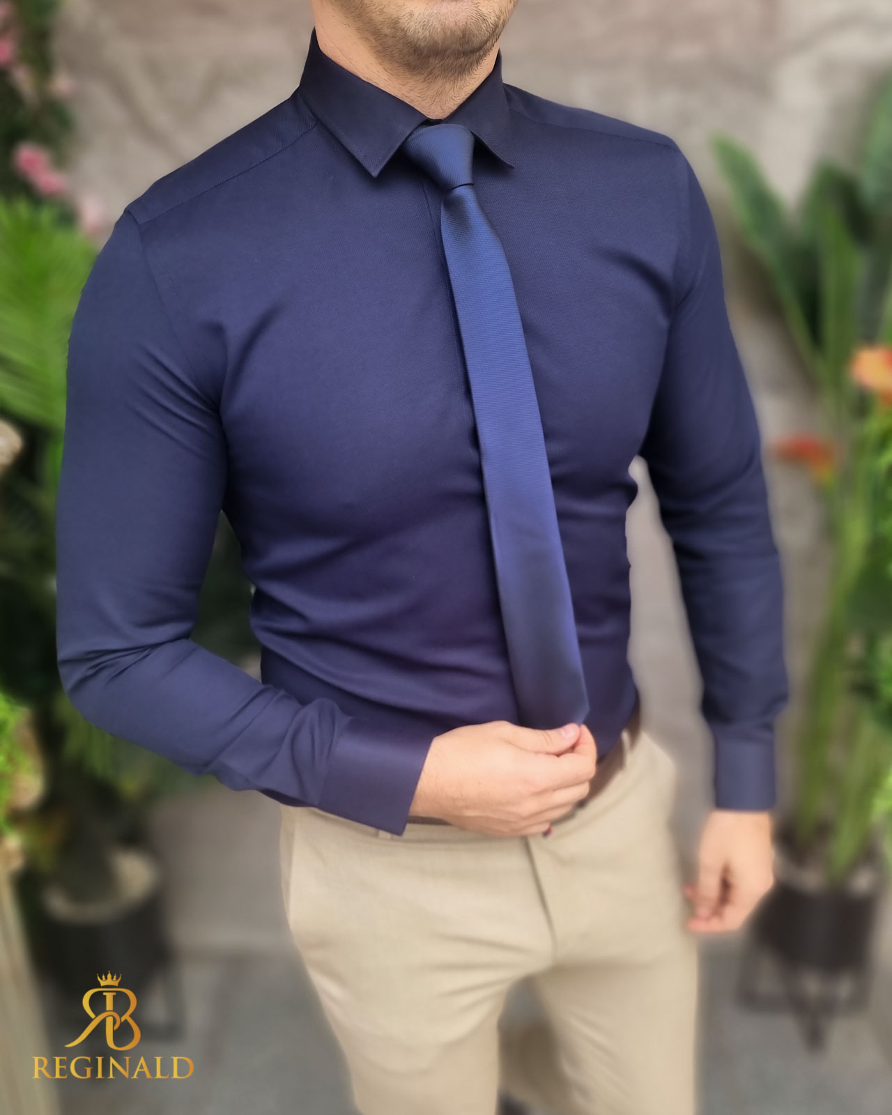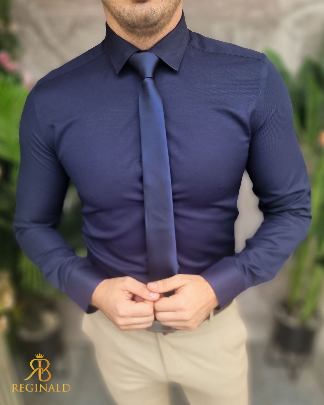 Cămașa barbateasca, nuanta neagra cu textura fina, usor de calcat, model SCORE, croiala slim-fit