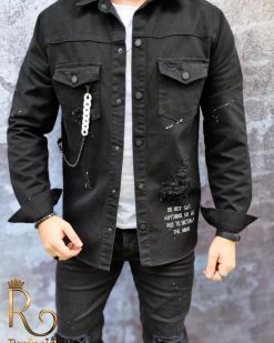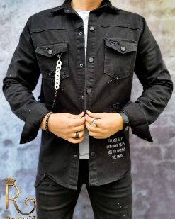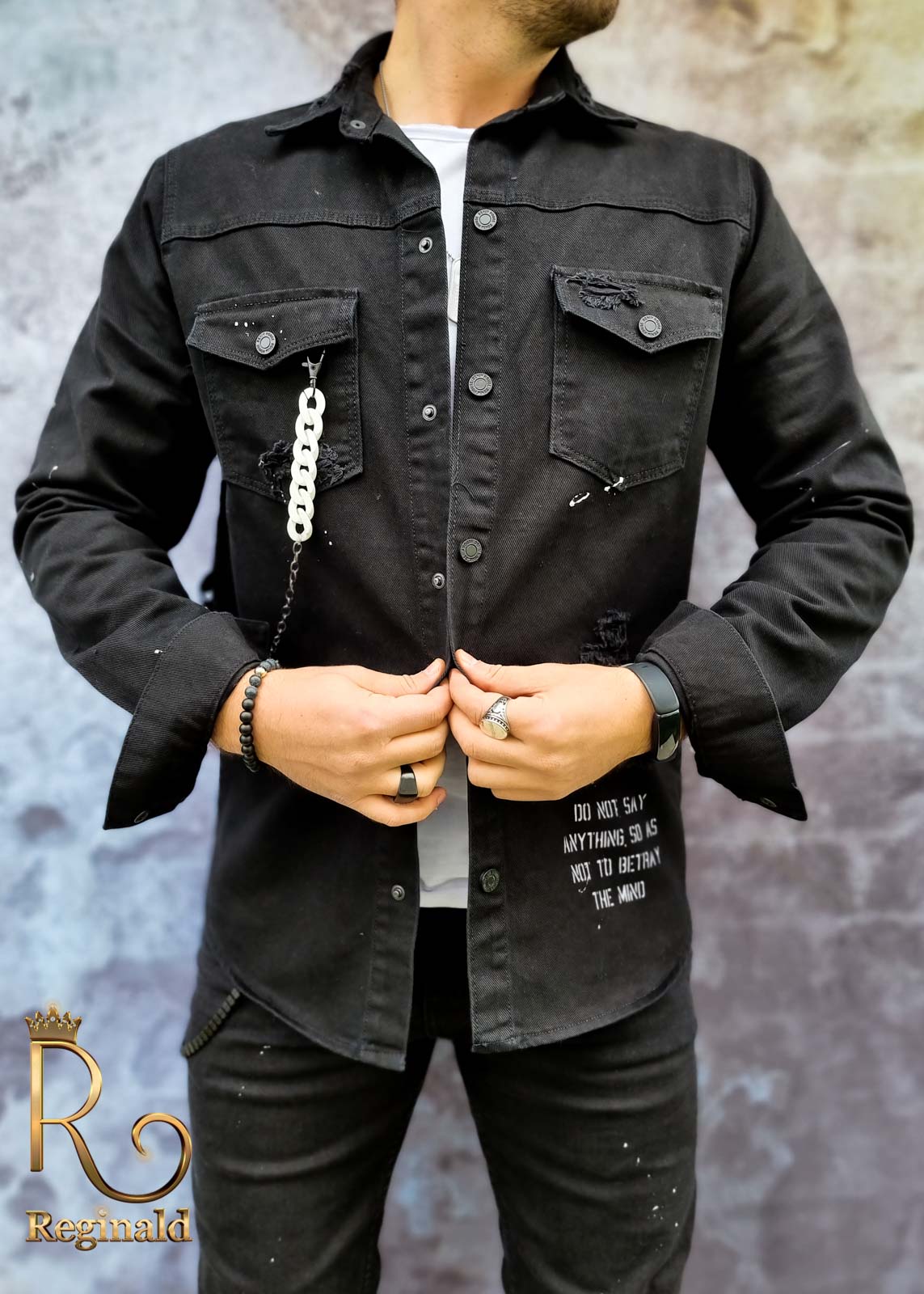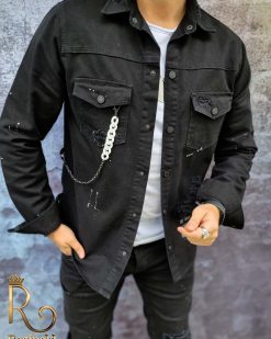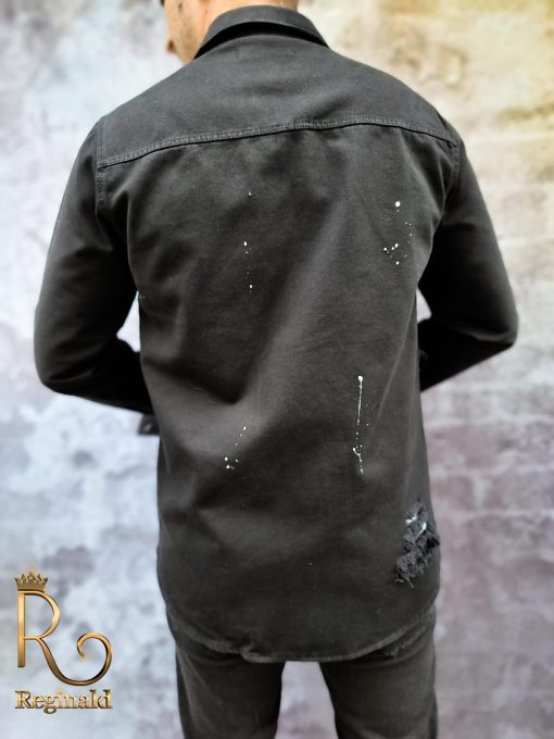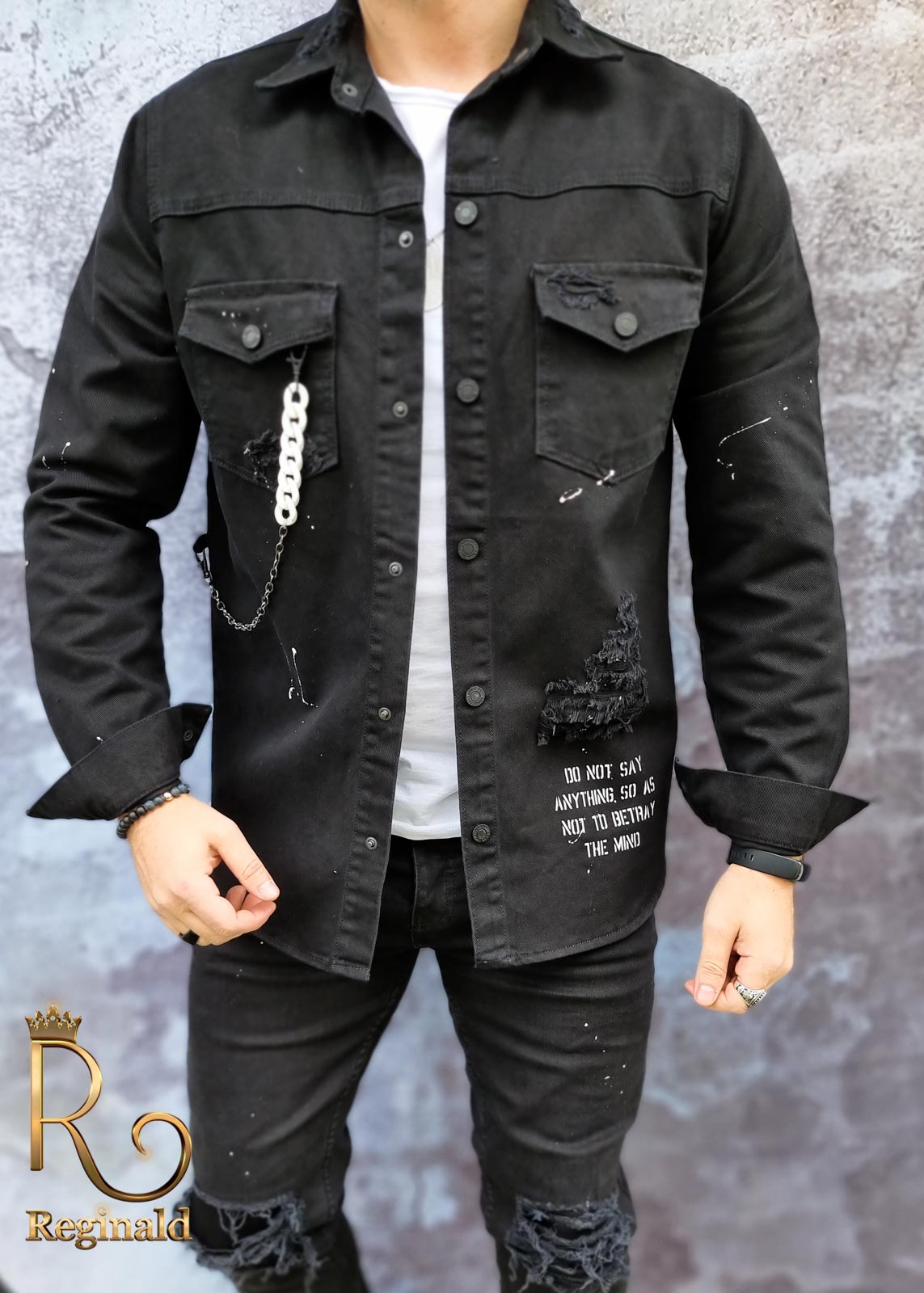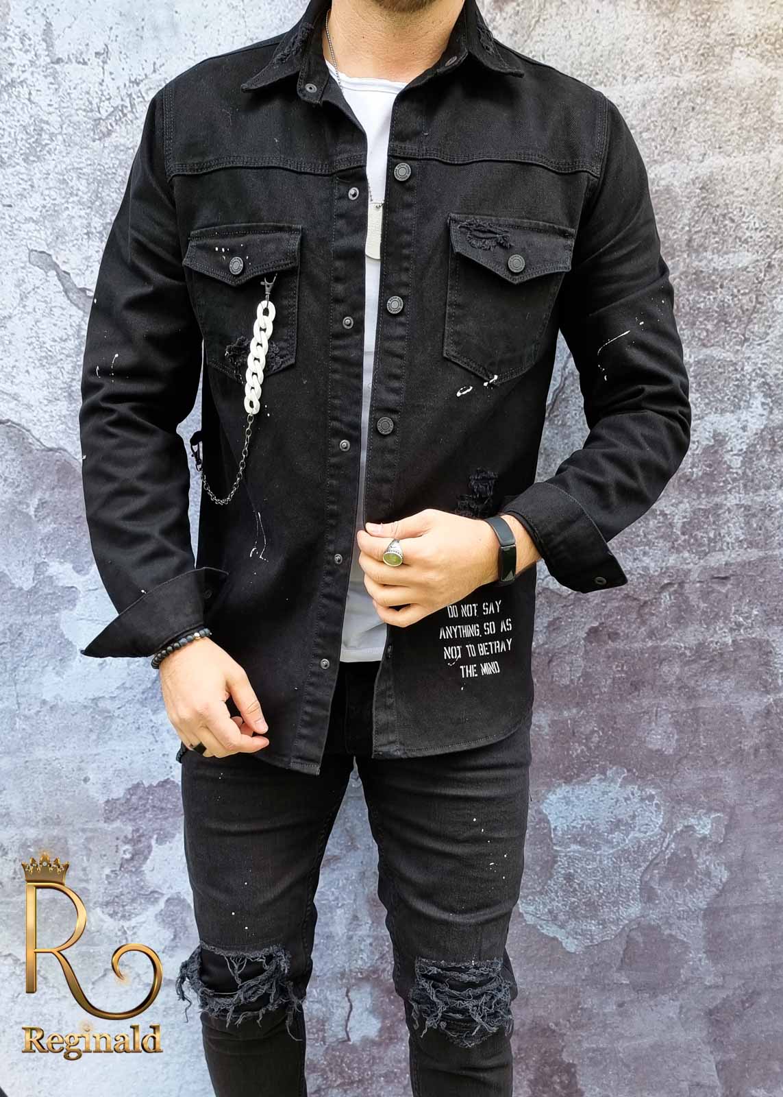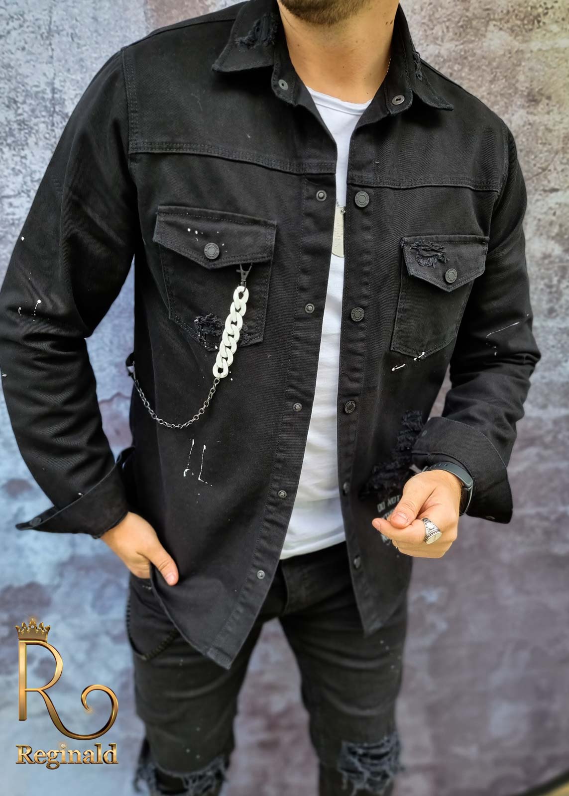 Camasa de blug are croiala slim fit, prindere cu capse metalice, buzunare la piept, lant metalic la buzunar, stropi si rupturi cool.