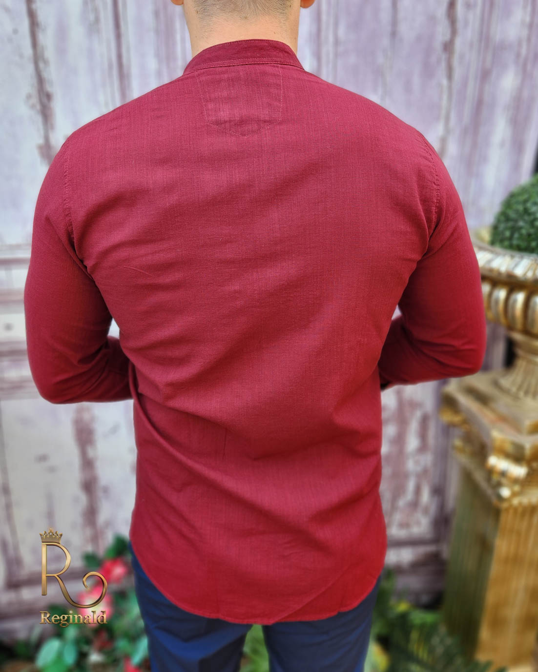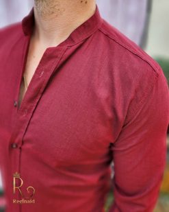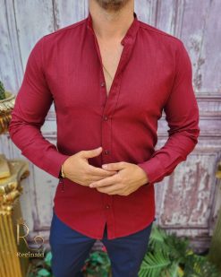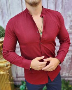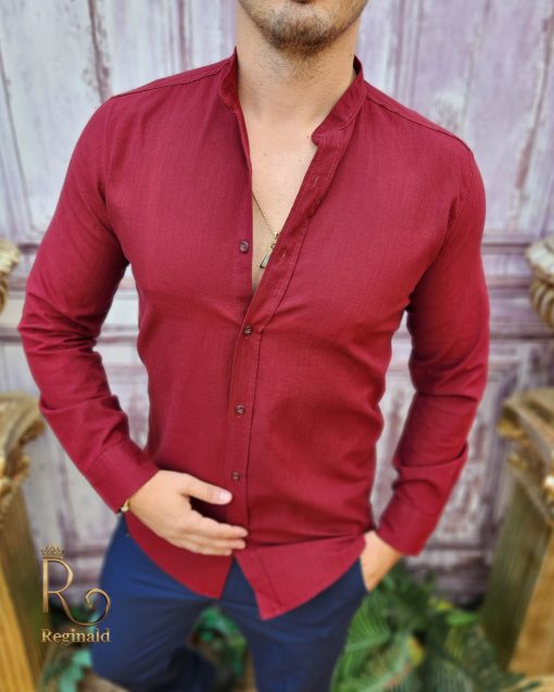 Cămașa barbateasca pentru sezonul toamna / primavara avand textura ca a materialului confectionat din in.