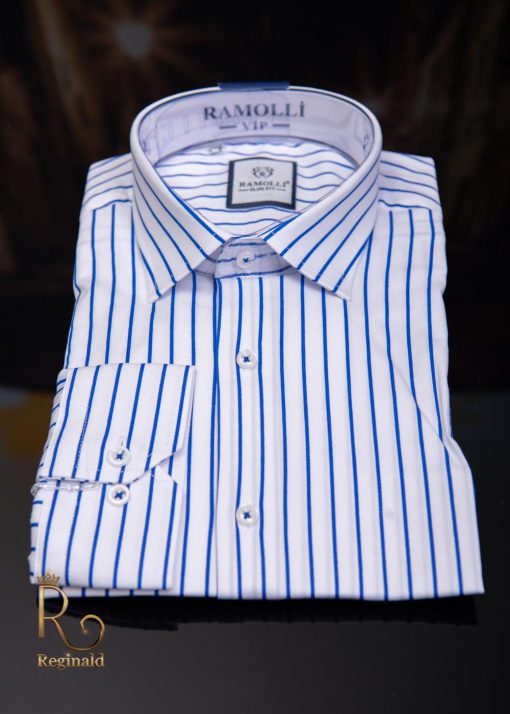 Camasa de barbati alba in dungi subtiri, bleu, croiala Slim-Fit, recomandata pentru evenimente business, casual.