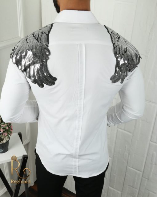 Camasa de barbati neagra slim-fit cu aripi din paiete