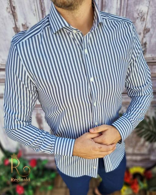 Camasa de barbati, Slim Fit, Alba cu dungi gri – CM477