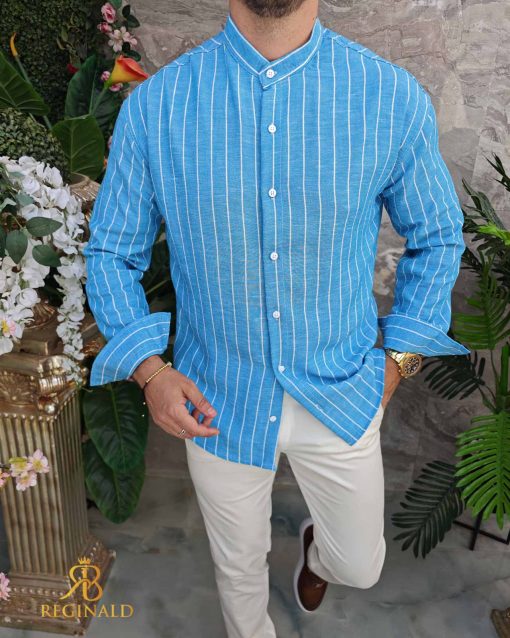 Cămașă de bărbați, Slim Fit, albastra cu dungi albe – CR162