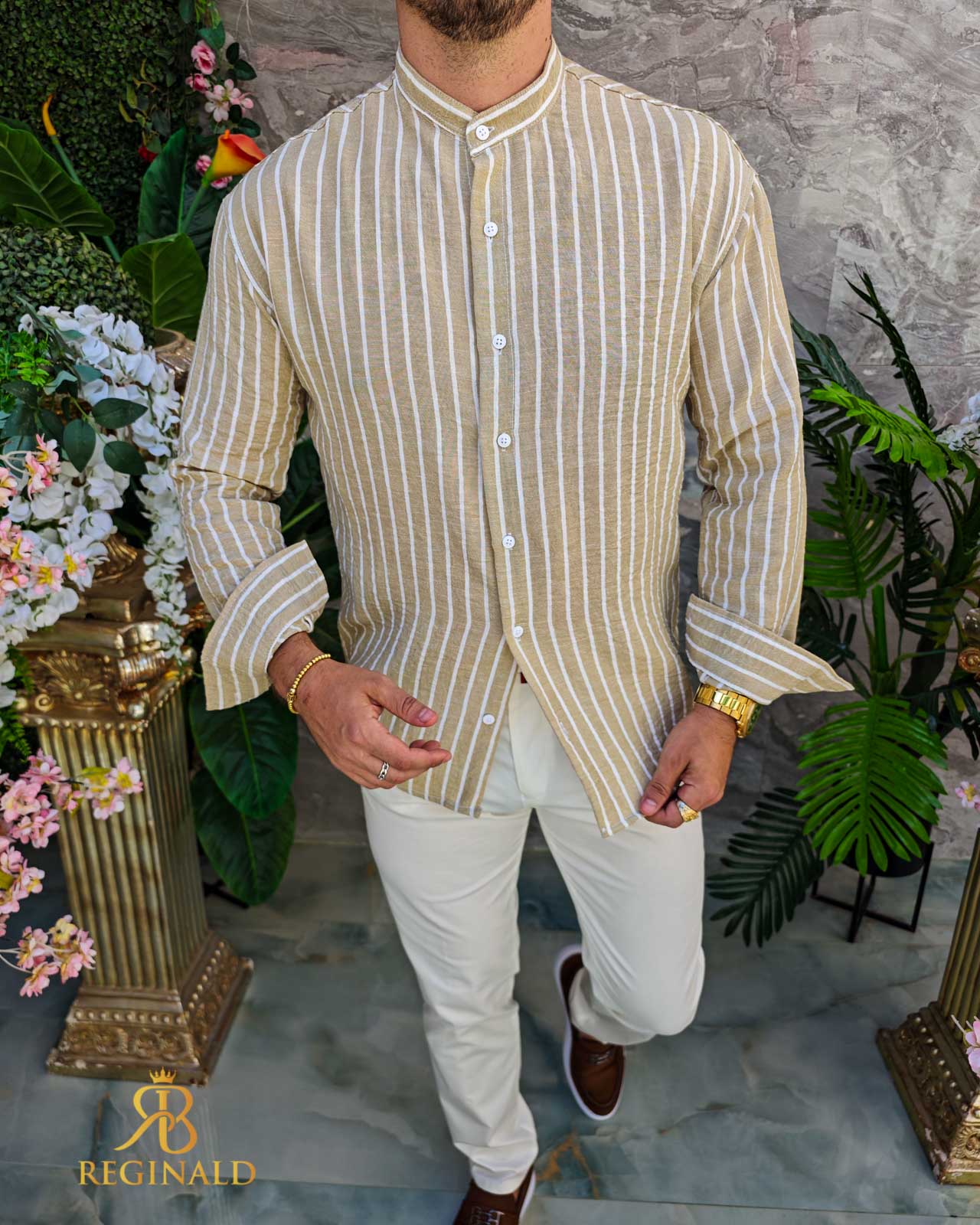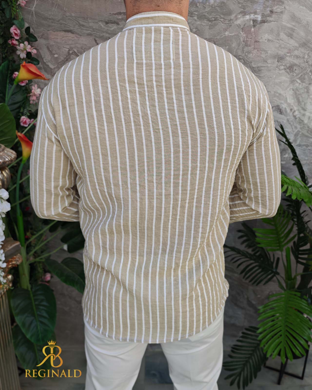 Cămașă de bărbați, Slim Fit, bej cu dungi albe – CR163