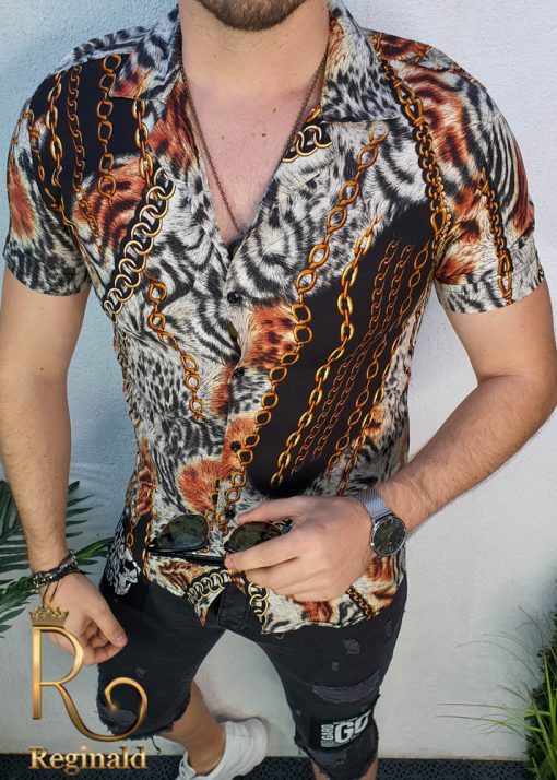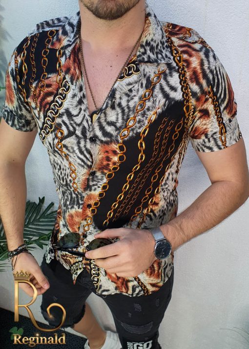 Camasa de barbati, slim fit, cu maneci scurte inflorata