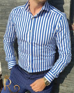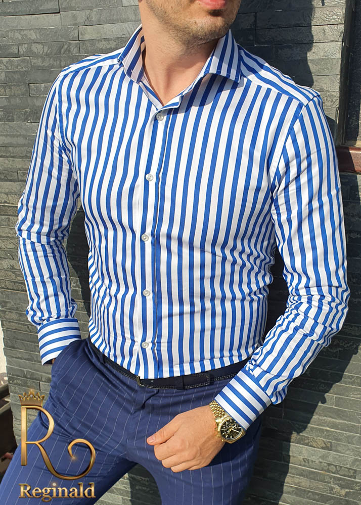 Camasa slim fit in dungi albastre, de barbati, din 100% bumbac